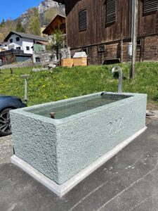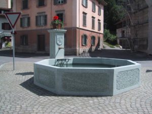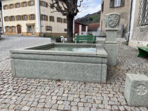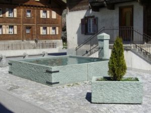 Dorfbrunnen in Salouf, Holz und Stein Restaurierung, Parsonz