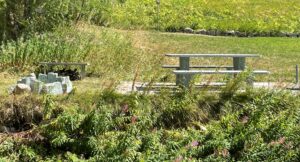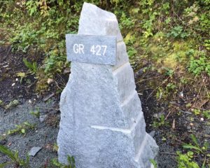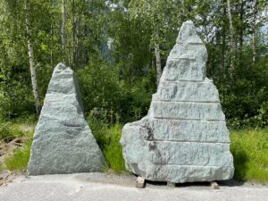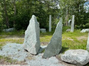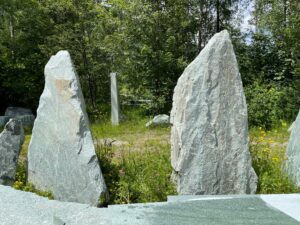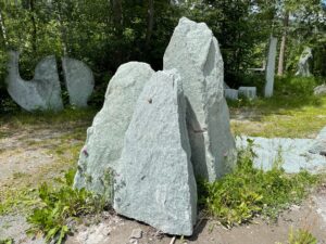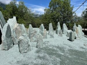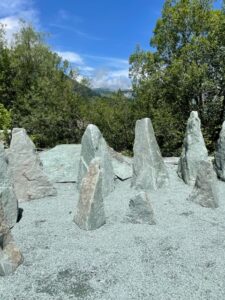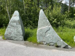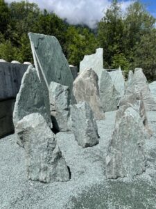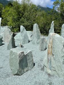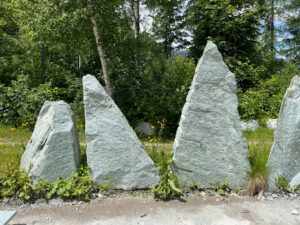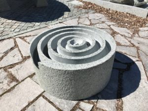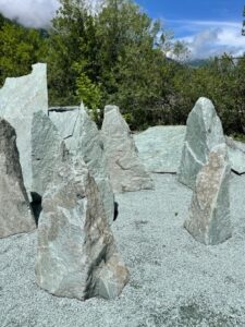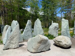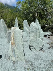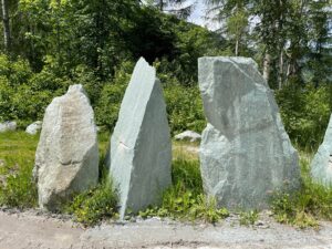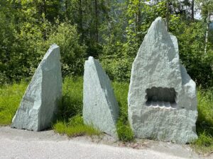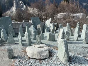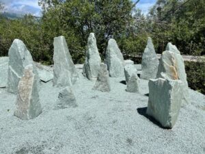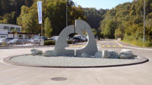 Kollbrunner Kreisel im Tösstal. "Schnecke" Skulptur und Findlinge