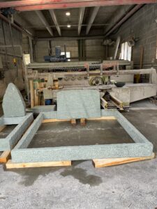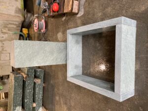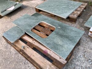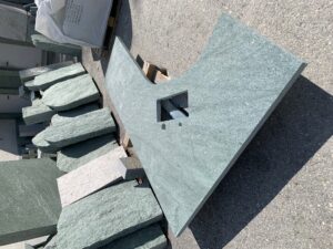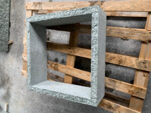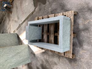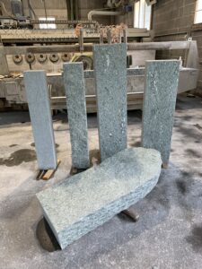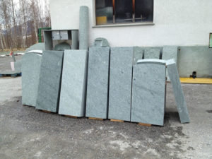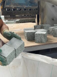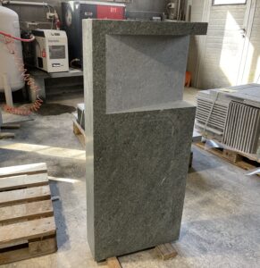 Oberfläche geflammt, 4 Kanten gespalten, unten gesägt, 8/11 cm