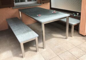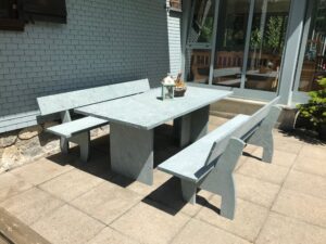 Masse Bänke: L= 180-220 cm, B= 35 cm, H= 45 cm