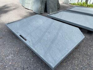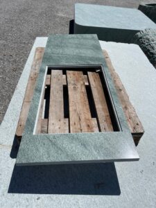 Bearbeitung: Sichtflächen geflammt, Kanten grob gespitzt
